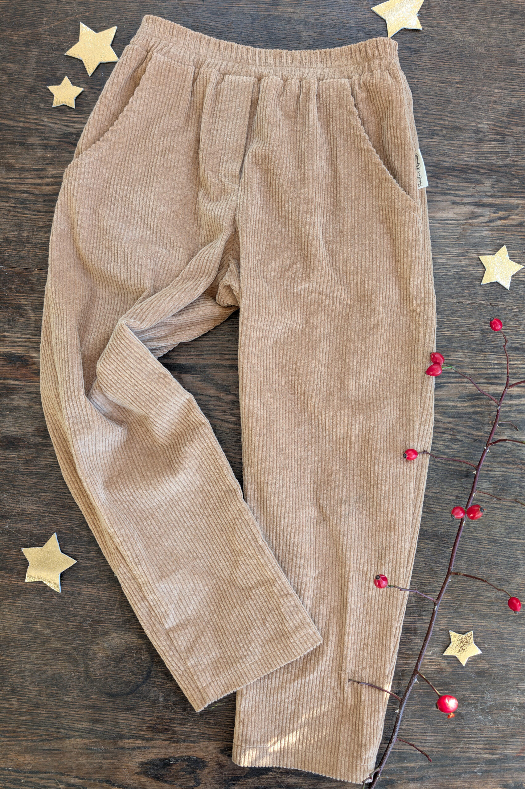Schick und bequem zugleich ist die Cordhose wilde Möhre. Hier in der Farbe Gerste vom ersten Bild in Größe 134