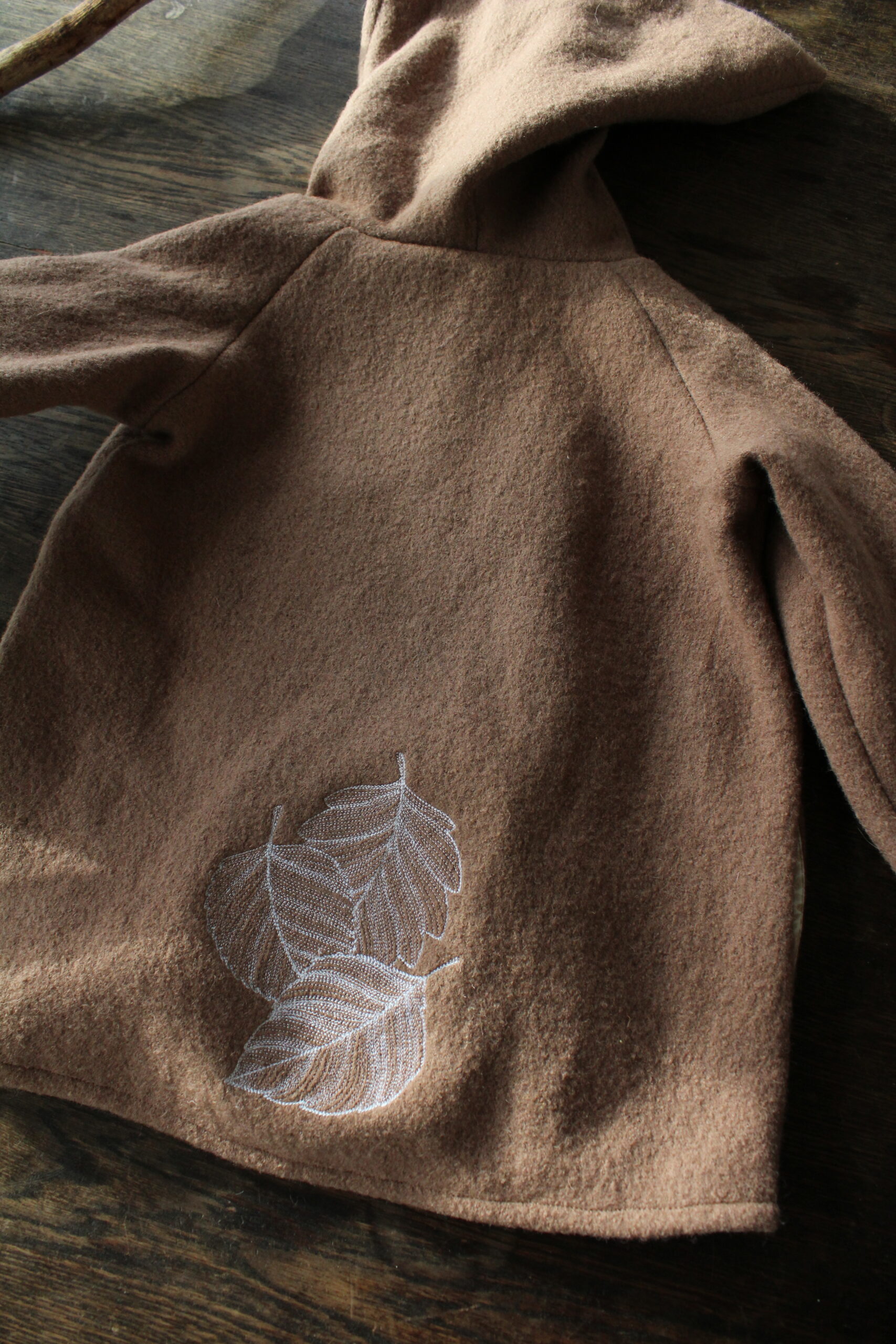 Größe 110/116, bestickt und mit Bündchen aus Merinowolle